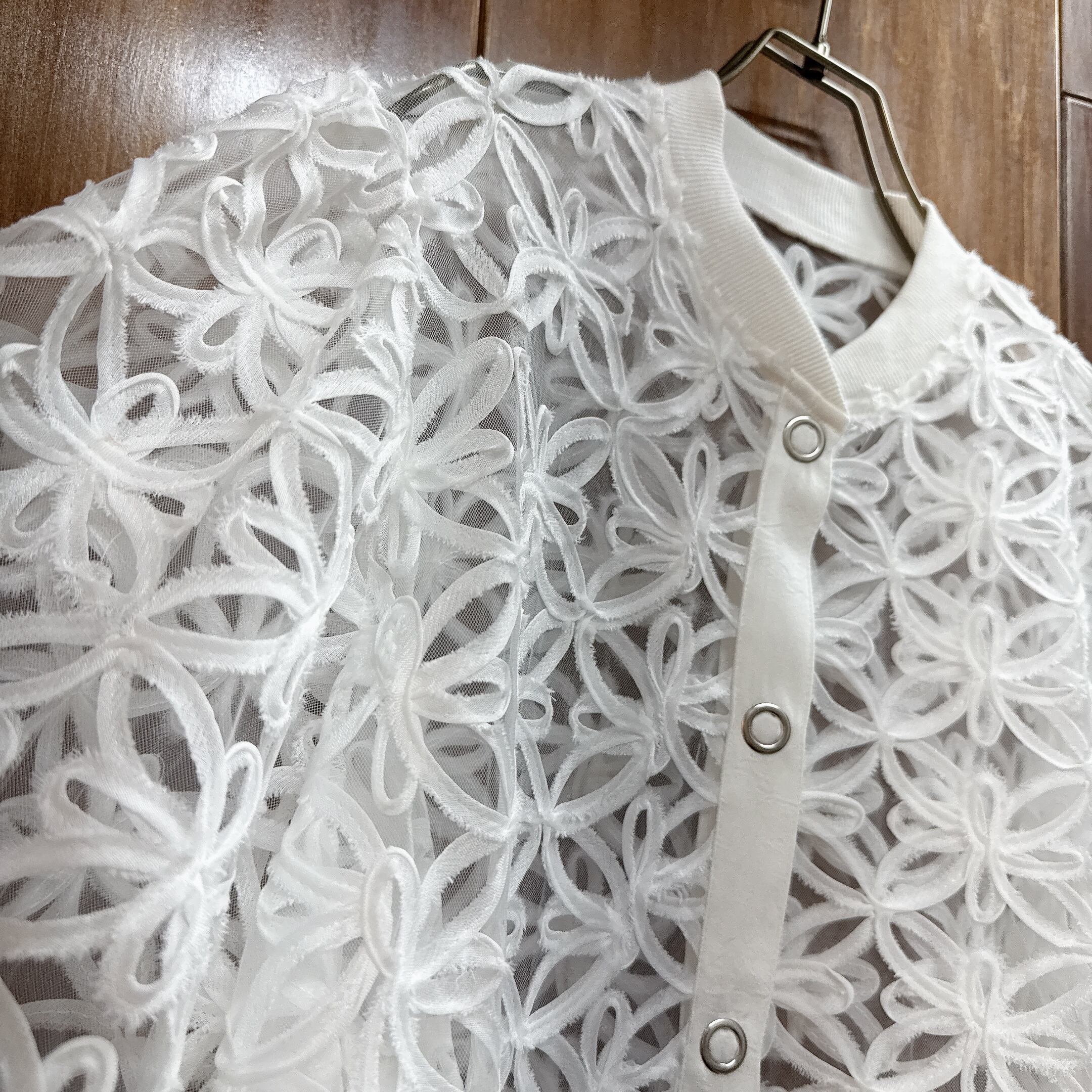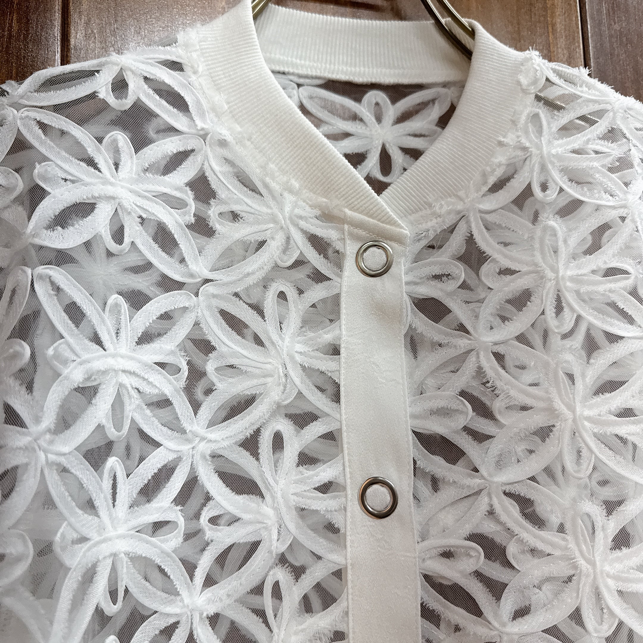 立体感のあるフラワーレース生地が目を惹くシアーブルゾン。