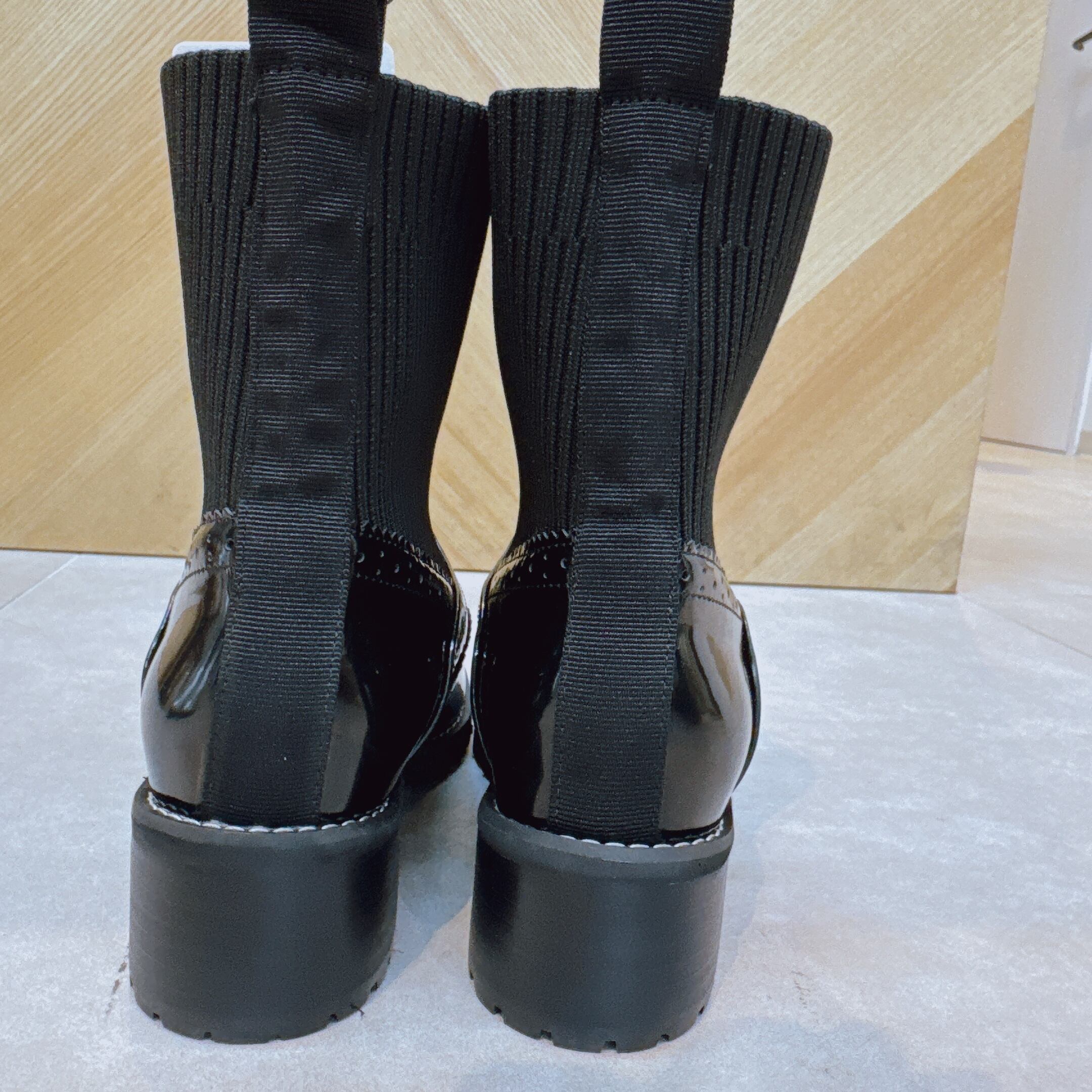 つま先のパンチング装飾がクラシックな雰囲気とサイドのリブがアクティブなミックスデザインのブーツ。