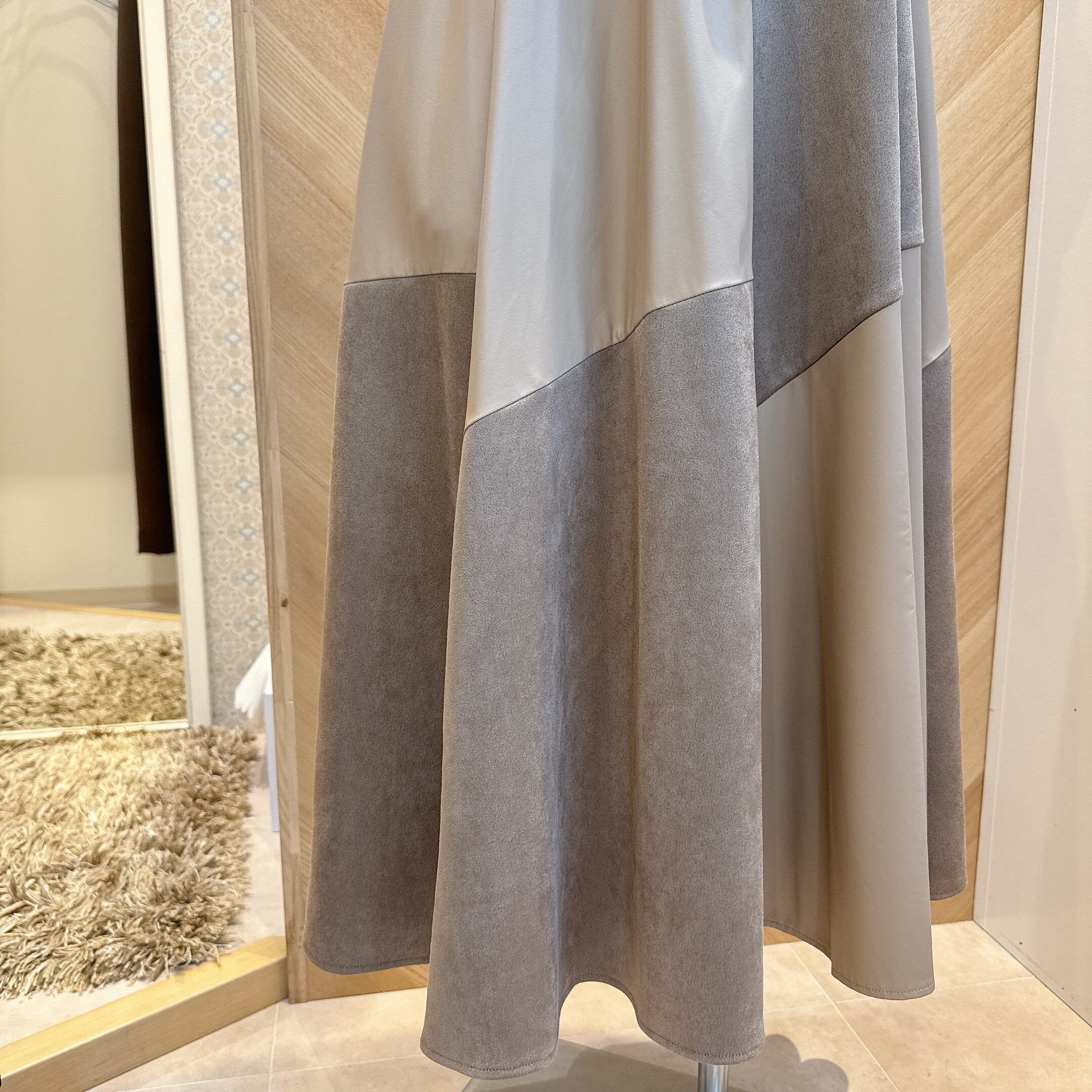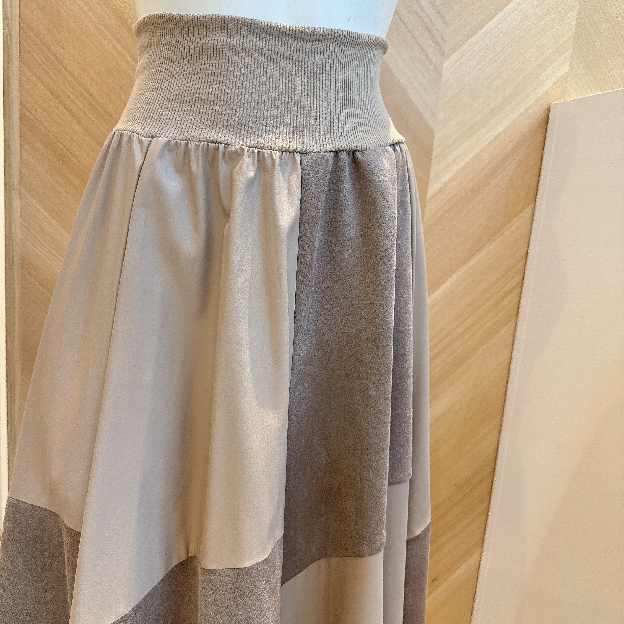 エコレザーとヌバック風なお生地が組み合わせされたスカート 。