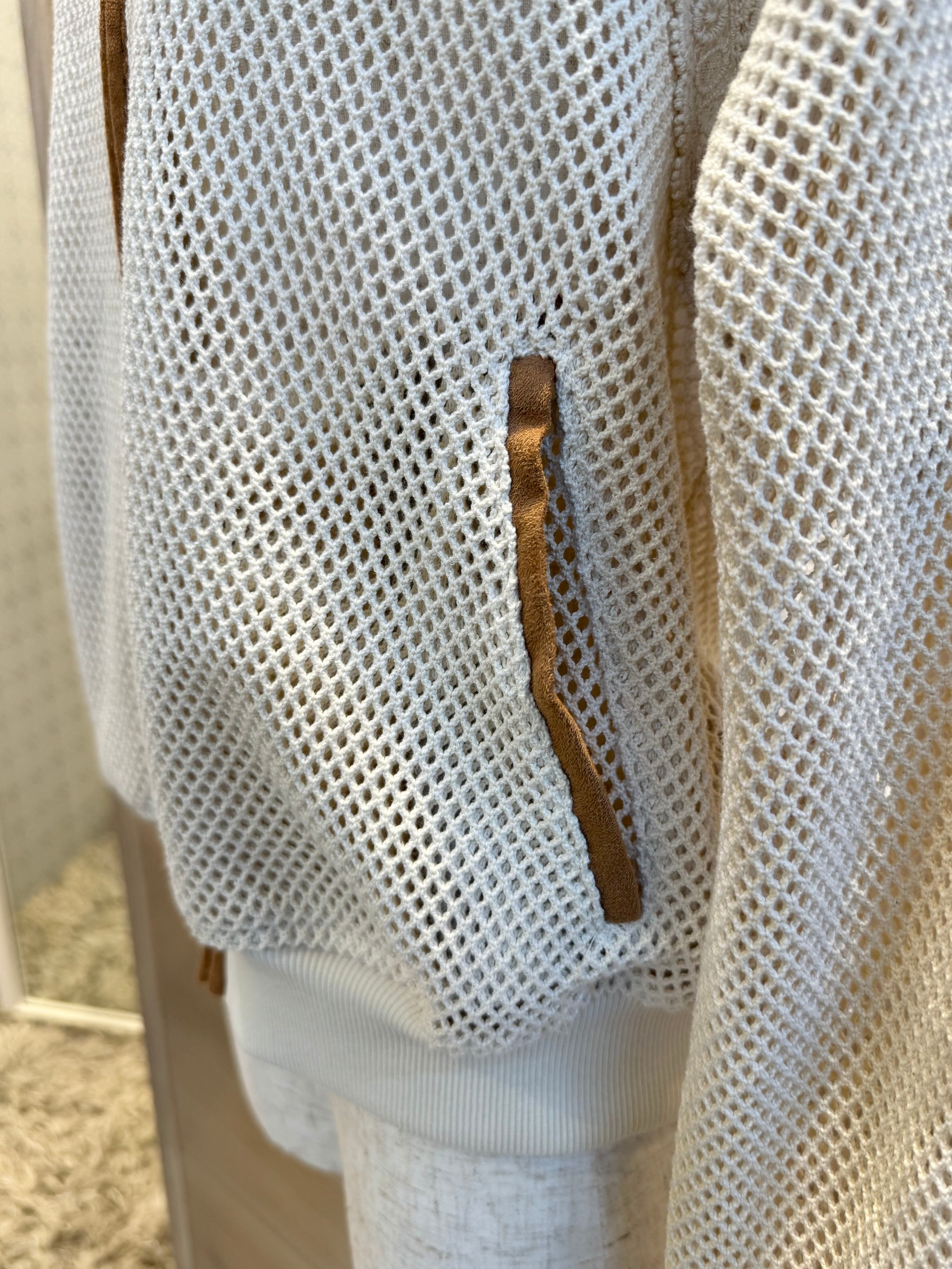 メッシュ素材の程よい透け感が、女性らしい肌見せを叶えるブルゾン。襟元やジップ部分にパイピングを施し、さりげないデザインアクセント。