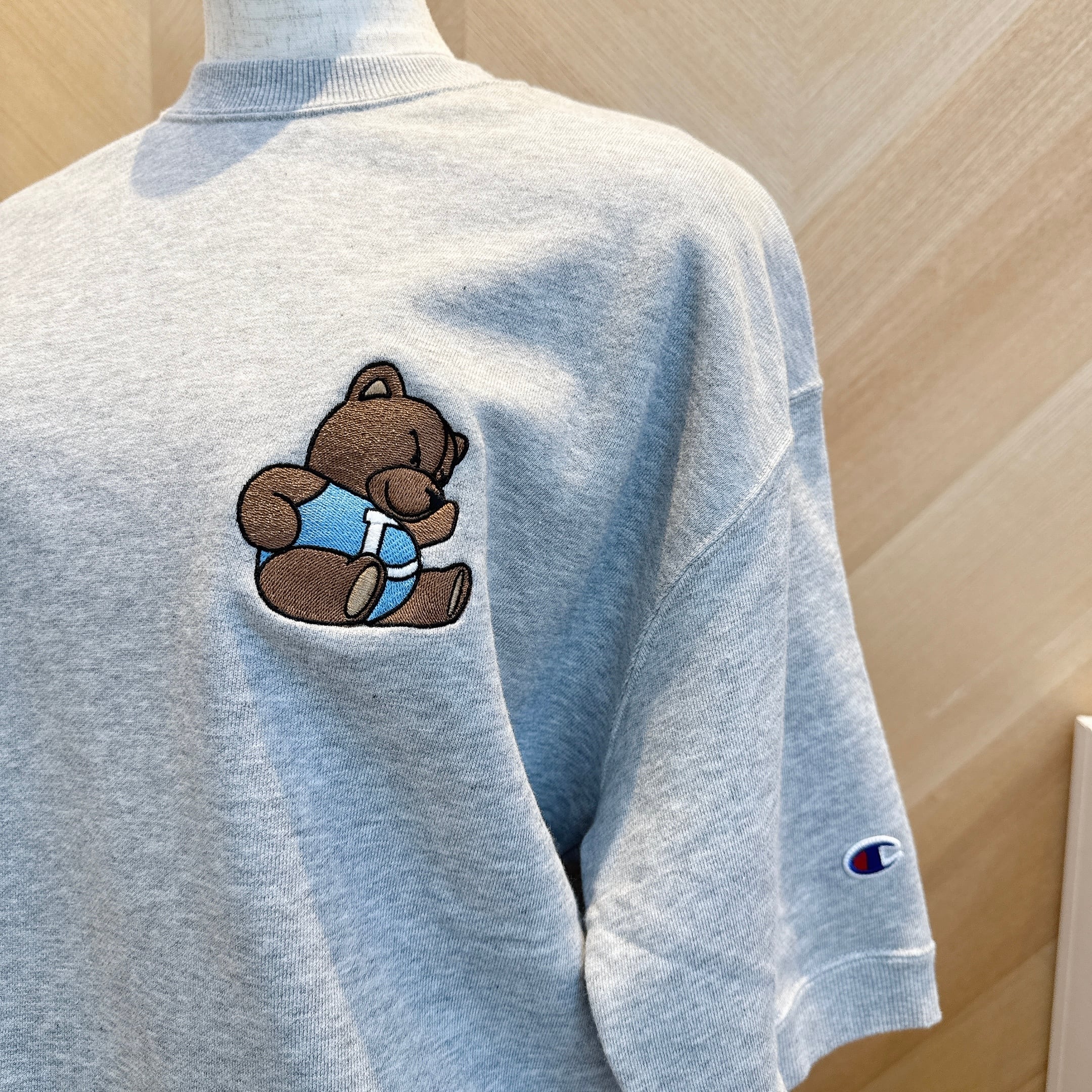 アメリカ発ブランド「Champion」に別注した半袖スウェット。フロントにはロゴと人気キャラクター「ニジタロウ」をあしらい、遊び心のあるデザイン。
