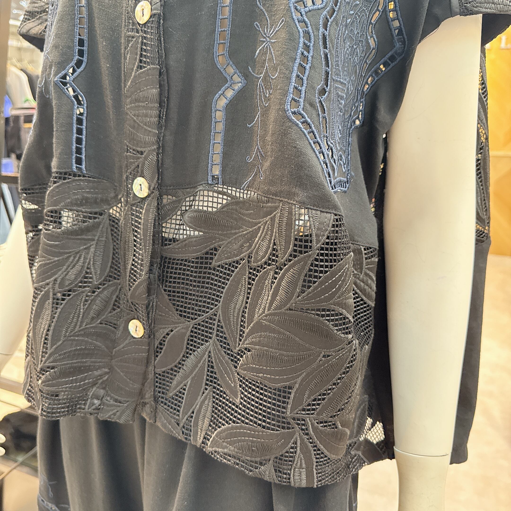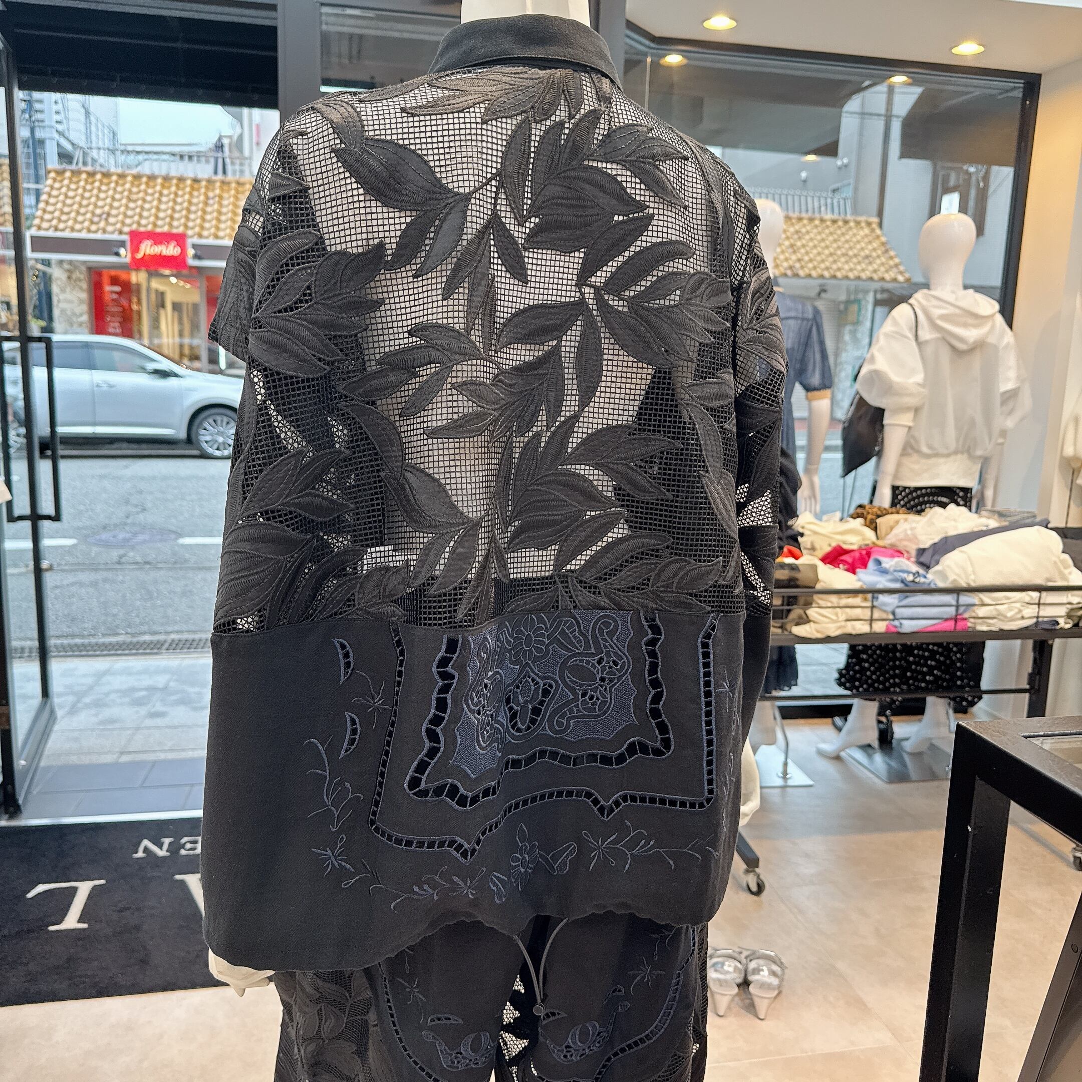 カットワーク刺繍が映える、涼しげなスリーブレスシャツ。オーバーサイズで裾は調整可能、羽織りとしても使える春夏アイテム。