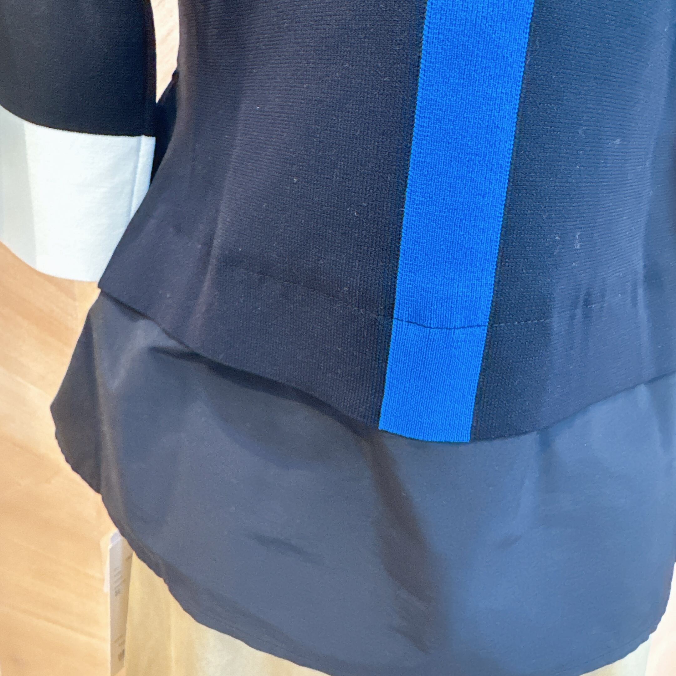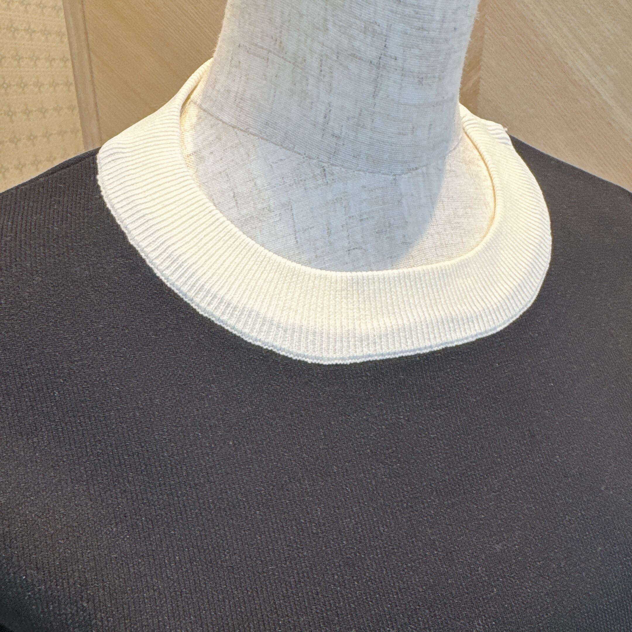 布帛×ニットの異素材切替で、立体感のあるコクーンシルエットが魅力。